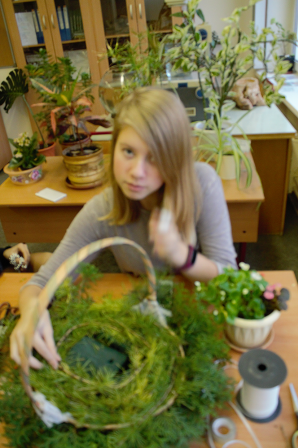 Данную творческую работу в качестве флористического проекта на дистанционном этапе городского конкурса JuniorSkills в номинации «Флористика» представила команда участников школы №1498 под руководством педагога-наставника Горышевой Веры Алексеевны